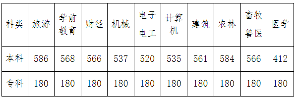 | 科類 | 本科一批 | 本科二批 | 專科批 |